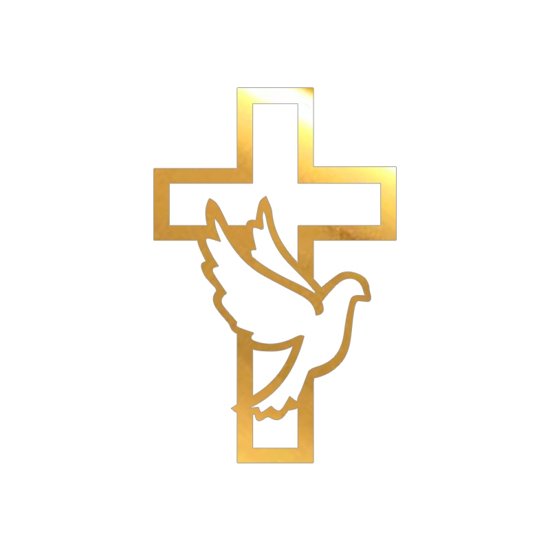 Dekor na tort w kształcie małego obrysu krzyżyka z gołąbkiem, wykonany z lustra złotego idealnie nada się do udekorowania wyjątkowych komunijnych wypieków dla chłopców jak i dziewczynek. nie tylko tortów i ciast ale również mniejszych takich jak babeczki, muffiny czy małe ciastka okzajonalne.