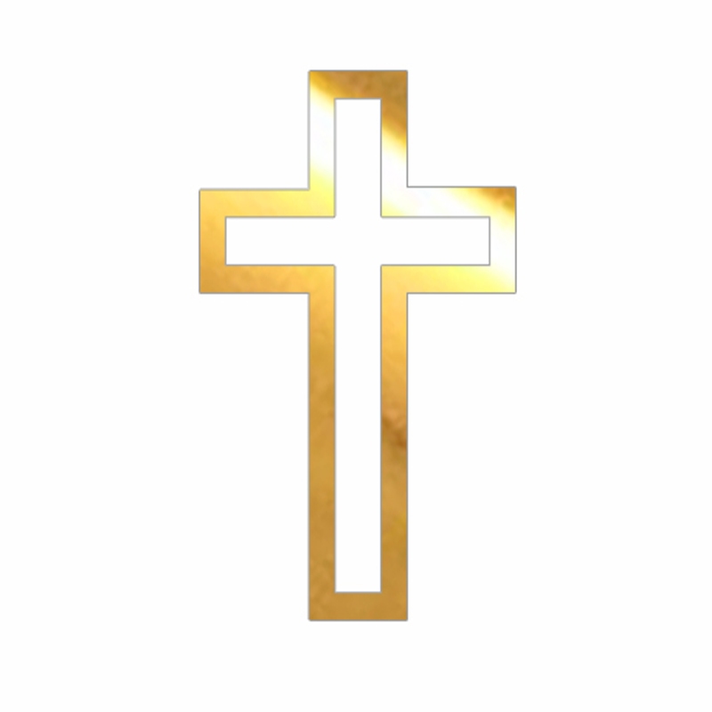 Dekor na tort w kształcie małego obrysu krzyżyka, wykonany z lustra złotego idealnie nada się do udekorowania wyjątkowych komunijnych wypieków dla chłopców jak i dziewczynek. nie tylko tortów i ciast ale również mniejszych takich jak babeczki, muffiny czy małe ciastka okzajonalne.
