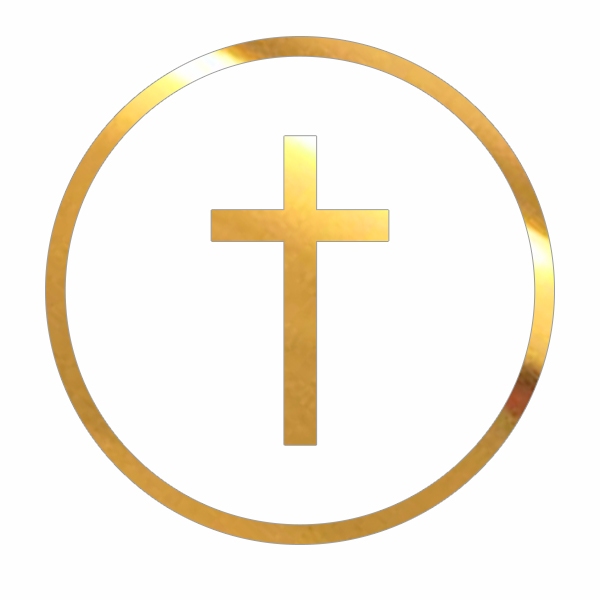 Dekor na tort w kształcie małego krzyżyka w okręgu, wykonany z lustra złotego idealnie nada się do udekorowania wyjątkowych komunijnych wypieków dla chłopców jak i dziewczynek. nie tylko tortów i ciast ale również mniejszych takich jak babeczki, muffiny czy małe ciastka okzajonalne.