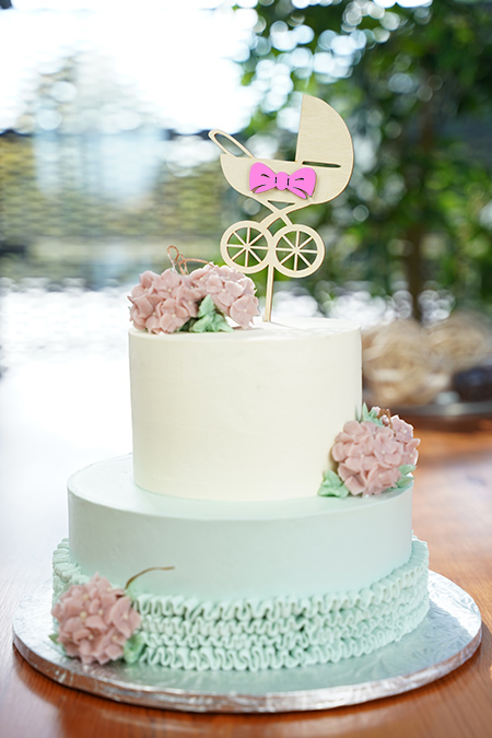 Topper na tort ,w kształcie wózka wykonany ze sklejki brzozowej z dodatkową różową kokardą uszczęśliwi każdą młodą solenizantkę.