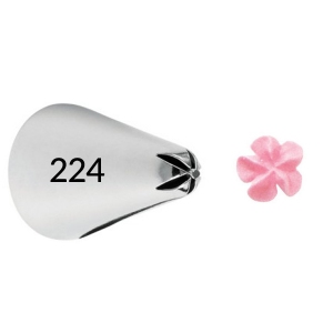 Otwór tylki pozwala na wykonanie wzoru w kształcie małego kwiatka z pięcioma płatkami. Kwiatuszkami z dowolnego kremu można ozdobić torty, ciasteczka, babeczki lub cake pops.