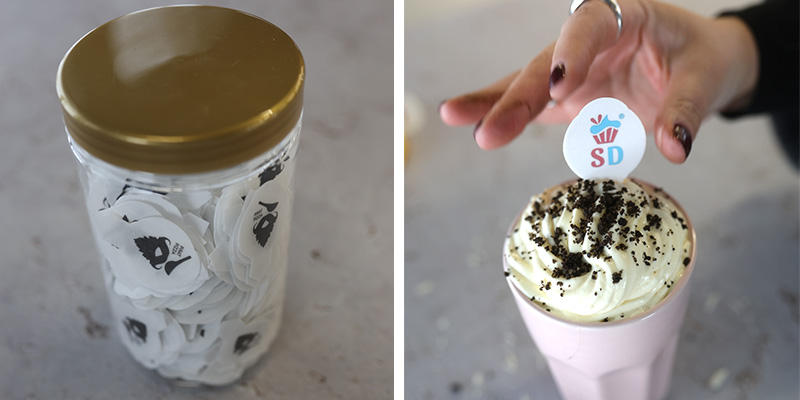 Wydruk Twojego zdjęcia lub grafiki na jadalnym papierze opłatkowym. Idealna dekoracja z cienkiego opłatka, który po nałożeniu na biały krem staje się delikatnie miękki i idealny do krojenia. Idealne logo na muffiny.