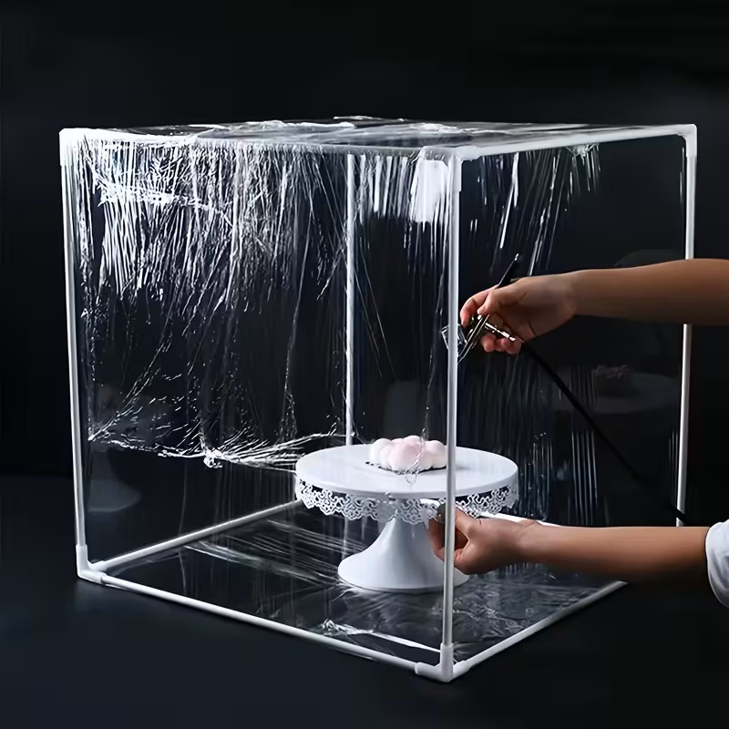 Konstrukcja osłony została zaprojektowana z myślą o intensywnym użytkowaniu w pracowniach cukierniczych, gastronomii oraz podczas szkoleń. Materiał zachowuje stabilność i kształt, a gładka powierzchnia ułatwia szybkie czyszczenie po zakończonej pracy.