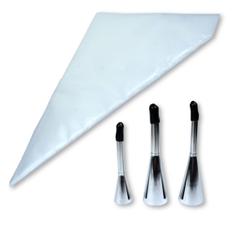 Zestaw jest odpowiedni do pracy z ganache, kremami, budyniami, marmoladą oraz innymi nadzieniami cukierniczymi, zarówno gęstymi, jak i półpłynnymi.