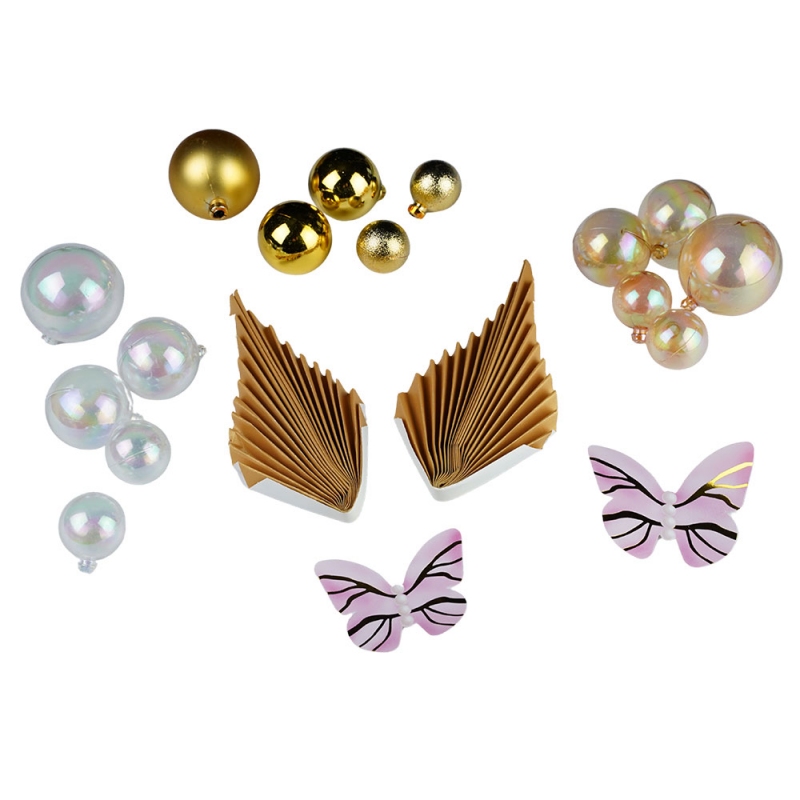Zestaw dekoracji na tort w krystalicznych kolorach. Komplet z 15szt kuleczek, 2szt wachlarzy i 10szt motylków.